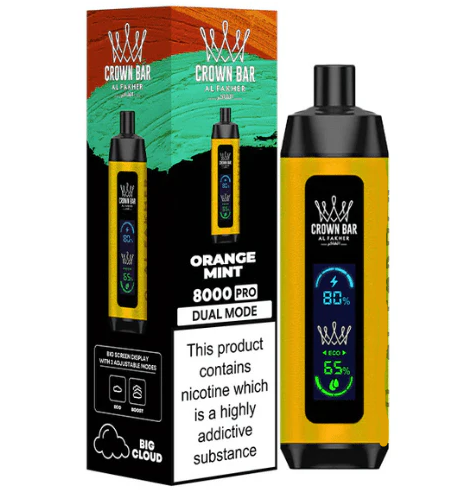 Discover the ultimate vaping experience with the Crown Bar Orange Mint 8000 Puffs 5mg DTL in Dubai, UAE. This disposable vape device offers 8000 puffs of pure satisfaction, powered by a 600mAh battery for long-lasting enjoyment.