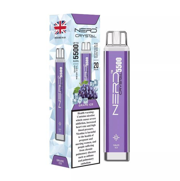 This NERD Crystal Grape ice can vape up to 5500 puffs. Pre-loaded with 12ml of our award- winning e-liquids. Pre-charged pure cobalt battery. Ready to use instantly right out of the box available at king vape dubai store.