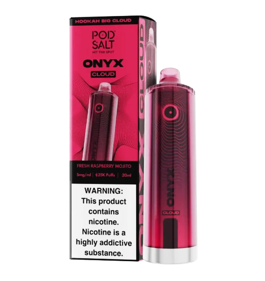 POD SALT Onyx Cloud Fresh Raspberry Mojito 25000pfs 5mg offers a smooth, long-lasting vape with 25000 puffs and 5mg/ml nicotine.Its sleek, portable design makes it perfect for on-the-go use. Enjoy a satisfying, consistent vape experience with every puff, wherever you are.