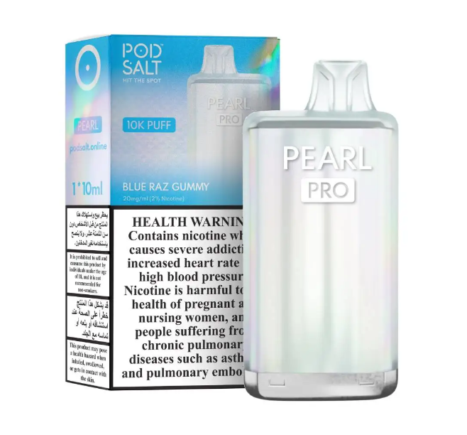 POD SALT PEARL PRO Blue Raz Gummy 10000pfs 2% Indulge in the juicy flavor of blue raspberry with a gummy candy touch with the Pod Salt Pearl Pro Blue Raz Gummy 20mg/ml. This disposable vape provides up to 10,000 puffs, offering consistent flavor and smooth nicotine satisfaction. Lightweight and portable, it’s perfect for on-the-go vapers who crave sweet and tangy notes.