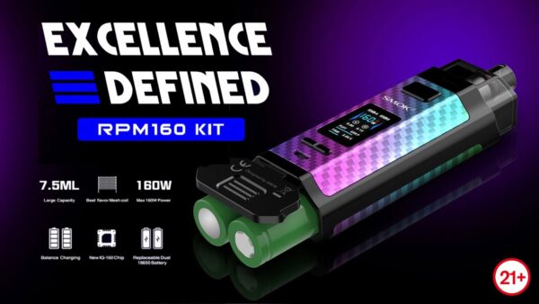 SMOK RPM160 POD MOD KIT is one of the popular manufacturers of both big box mods and pod vapes. Now they’re combined their knowledge in both to bring you the worlds firing dual 18650 pod system.