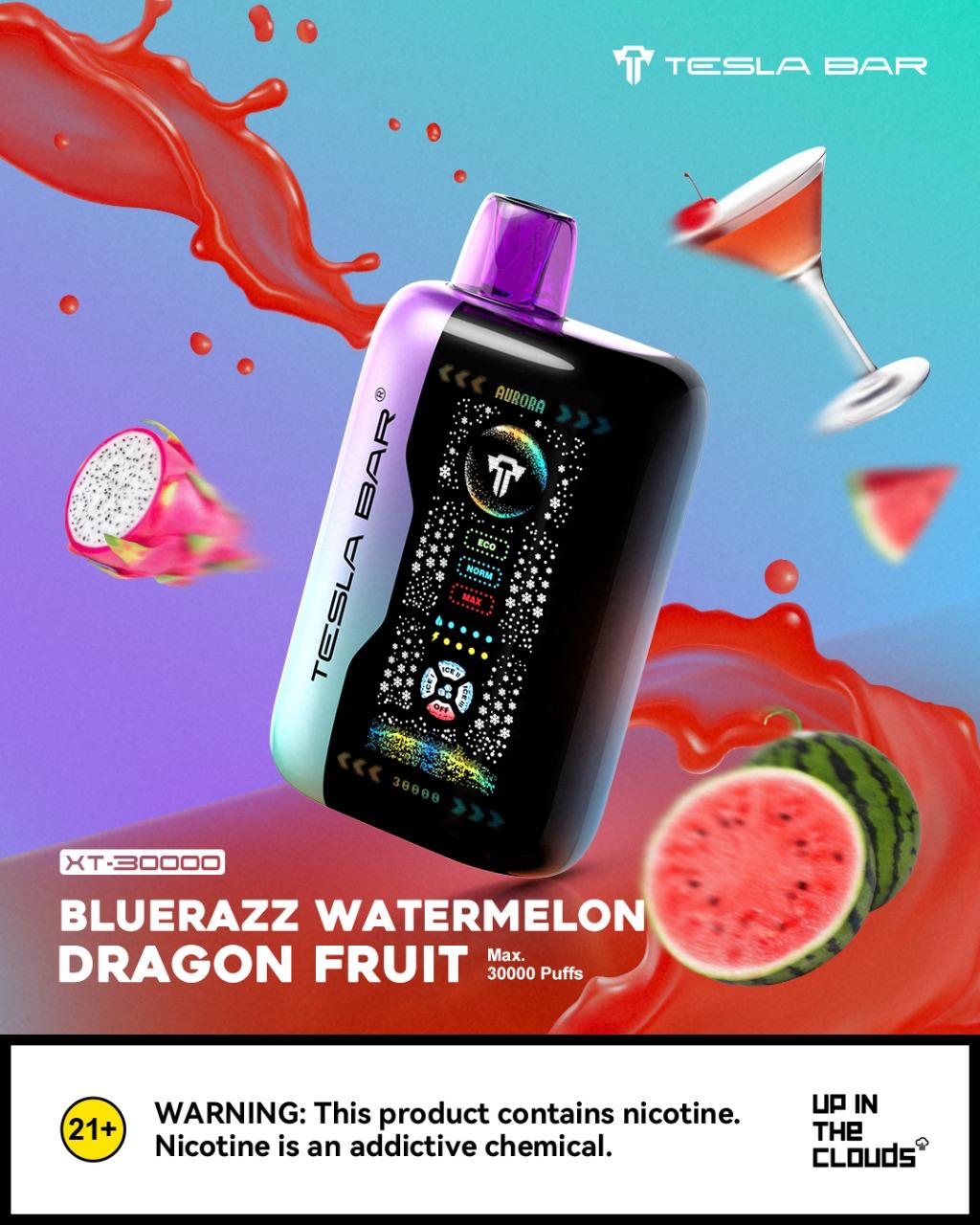Tesla Bar BlueRazz Watermelon Dragoon Fruit 30000puffs 20mg a beast in the vaping world. Whether you’re chasing clouds or savoring rich flavors, this premium disposable vape delivers big on both. Designed with UAE vapers in mind, it packs a punch with 30,000 satisfying puffs, making it the ideal pick for long-haul sessions without any interruptions.