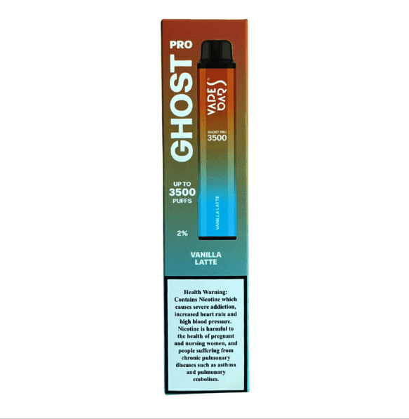 Vapes Bar Ghost Pro Vanilla Latte 3500pfs is compact and comfortable mouthpiece with a medium-tight draw ensures smooth yet powerful hits without any throat irritation and elegant feel and is designed to providing a satisfying cloud of flavor-saturated goodness with a 650mah rechargeable battery for long lasting use something our customers love.Ghost Pro is the newest disposable from the Vapes bar which lasts longer and with stylish design and All flavors available at king vape dubai.