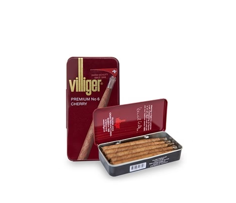 The Villiger Premium No.6 Cherry Cigar is made with tobaccos from many different locales and covered with smooth natural wrapper leaves, and each features a plastic filter tip for ultimate smoking comfort. These little machine made aromatic cigars are made with natural Ecuadorian wrapper leaves and have a plastic tip for your comfort. Villiger Premium No. 6 Cherry are made in Switzerland using filler tobacco from Zambia, Paraguay and Dominican Republic.
