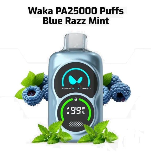 Waka Blue Razz Mint 25000pfs 50mg disposable vape is designed to elevate your vaping experience with an incredible 25,000 puff count and 50mg nicotine strength. Built for both convenience and performance, it offers a rich and smooth hit with dual mesh coil technology for consistent flavor in every puff. This high-capacity device comes equipped with a double screen, allowing you to effortlessly monitor battery life and liquid levels. Each puff provides bold, premium flavor, making it a great choice for long-lasting satisfaction..